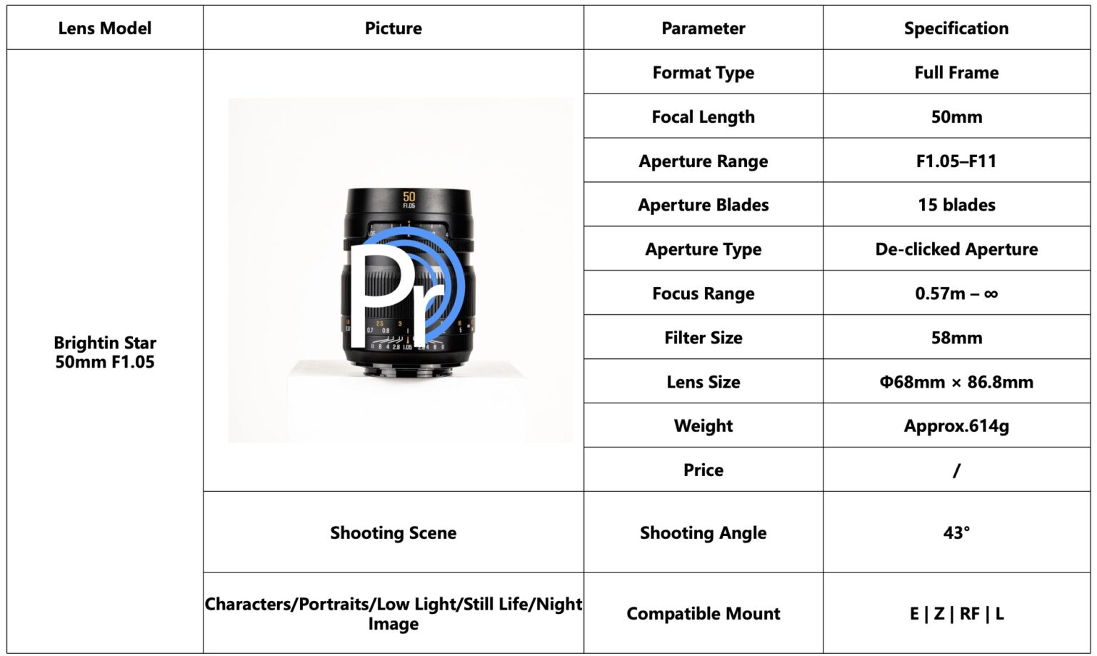 2026年1月15日,Brightin Star MF 50mm f/1.05 镜头适用于 Z/E/RF/L 卡口现已正式发布,并已可在Brightin Star官网订购,并享有首批优惠:开售价格$269.99(有效期为1月16日至1月26日),常规价格299.99美元。