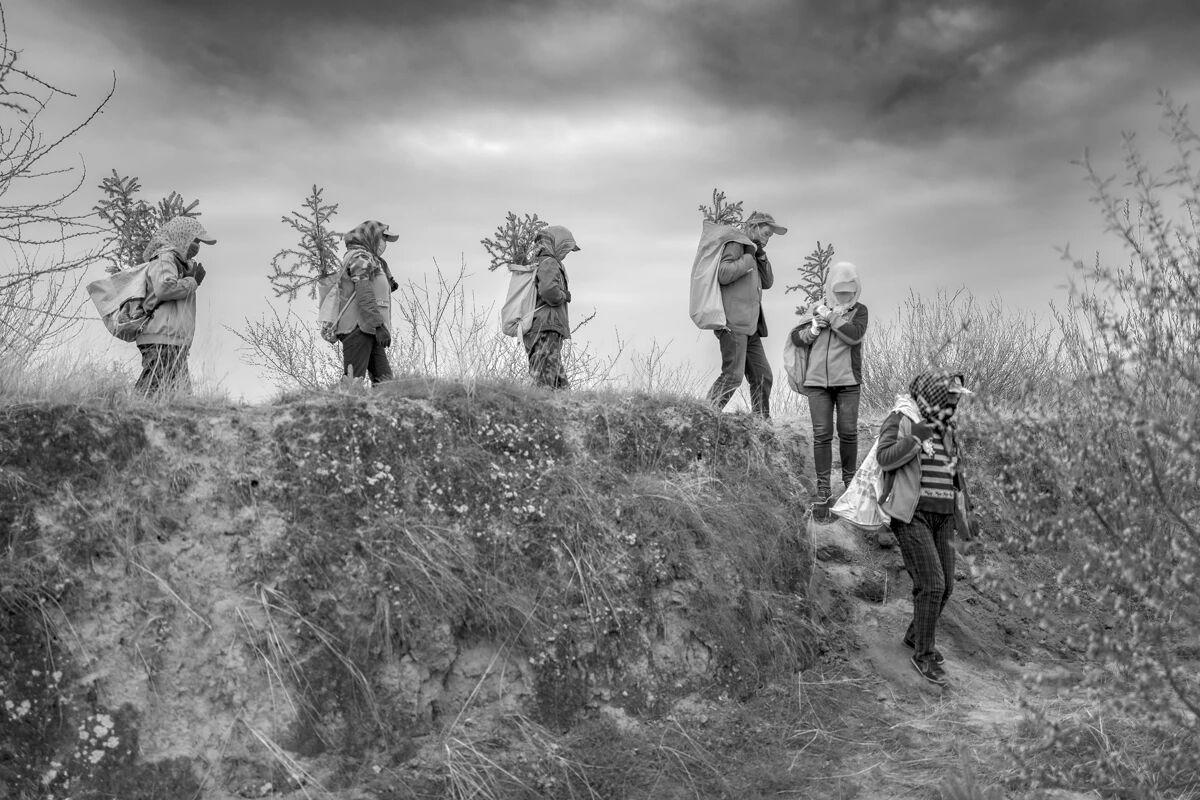 桃花落英缤纷的时节,恰是村民们志愿上山下沟植树的时节。宁夏固原市西吉县,2022年4月 牛红旗