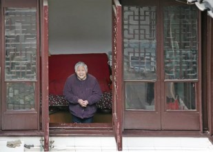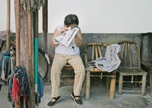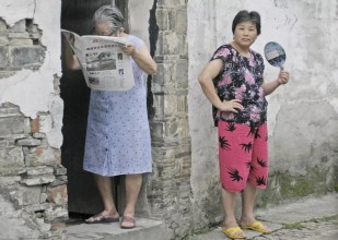 阿婆眼睛高度近视,但每天坚持读报纸。我说:你这样看报纸很吃力呀!她说:习惯了。(2009年9月摄于侍其巷)