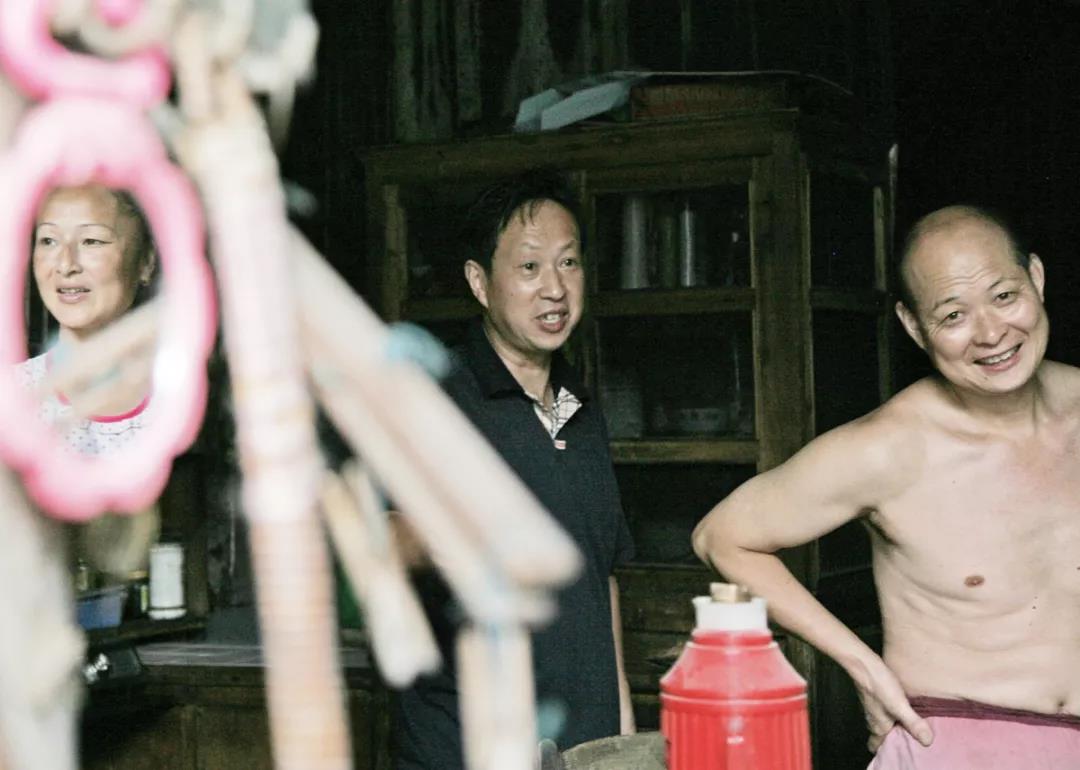 通常老宅里的客厅还是几家邻居共用的厨房,各占一方小天地,而画面中三户邻居和睦相处,把小小客厅统筹了一下,各家的厨房日用炊具归类统一放置,这样节约了场地,增加了生活活动区域。(2011年6月摄于宝林寺前)