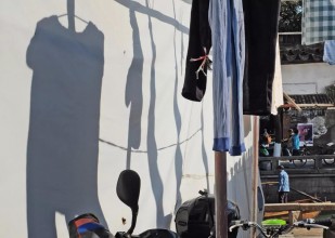 居民晒的衣裳影子。(2016年12月摄于平江路)