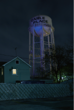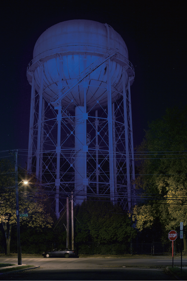 《隐形的丰碑》水塔系列作品是我住纽约郊区时的一组创作,在郊区几乎每个镇都会有一个大水塔,上面印有对应的镇的名字。一次偶然机会近距离经过一个水塔然后被其体积之庞大给震惊了。