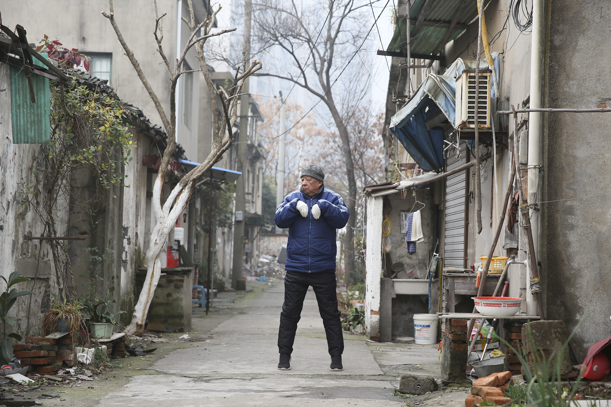 2020年1月14日, 许师傅打五行拳。他1949年出生,玻璃厂退休,曾支边去新疆,1979年返锡_退休前身体一直不好,退休后每天打拳。