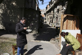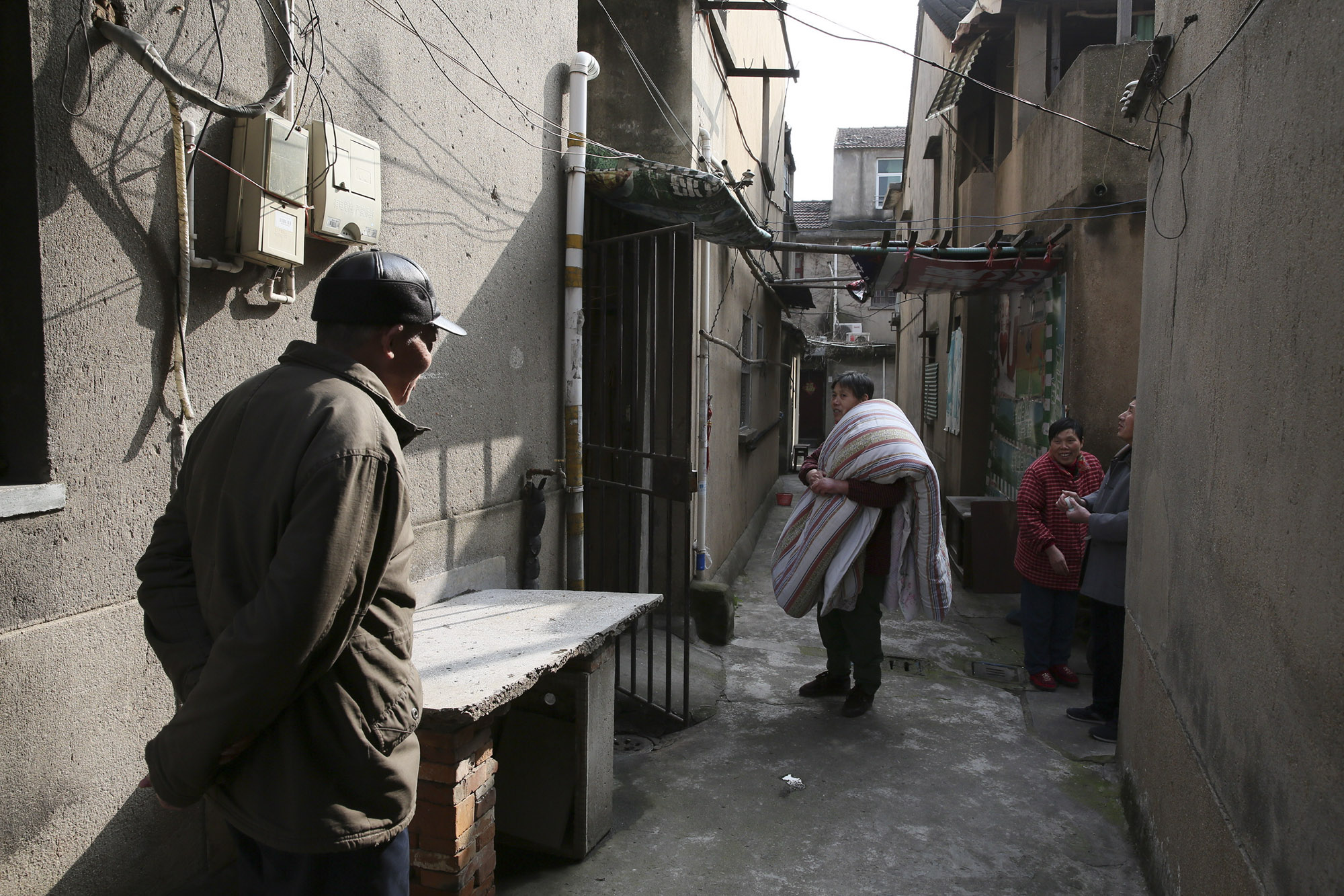 2020年1月19日,冯阿姨和邻居们聊天。