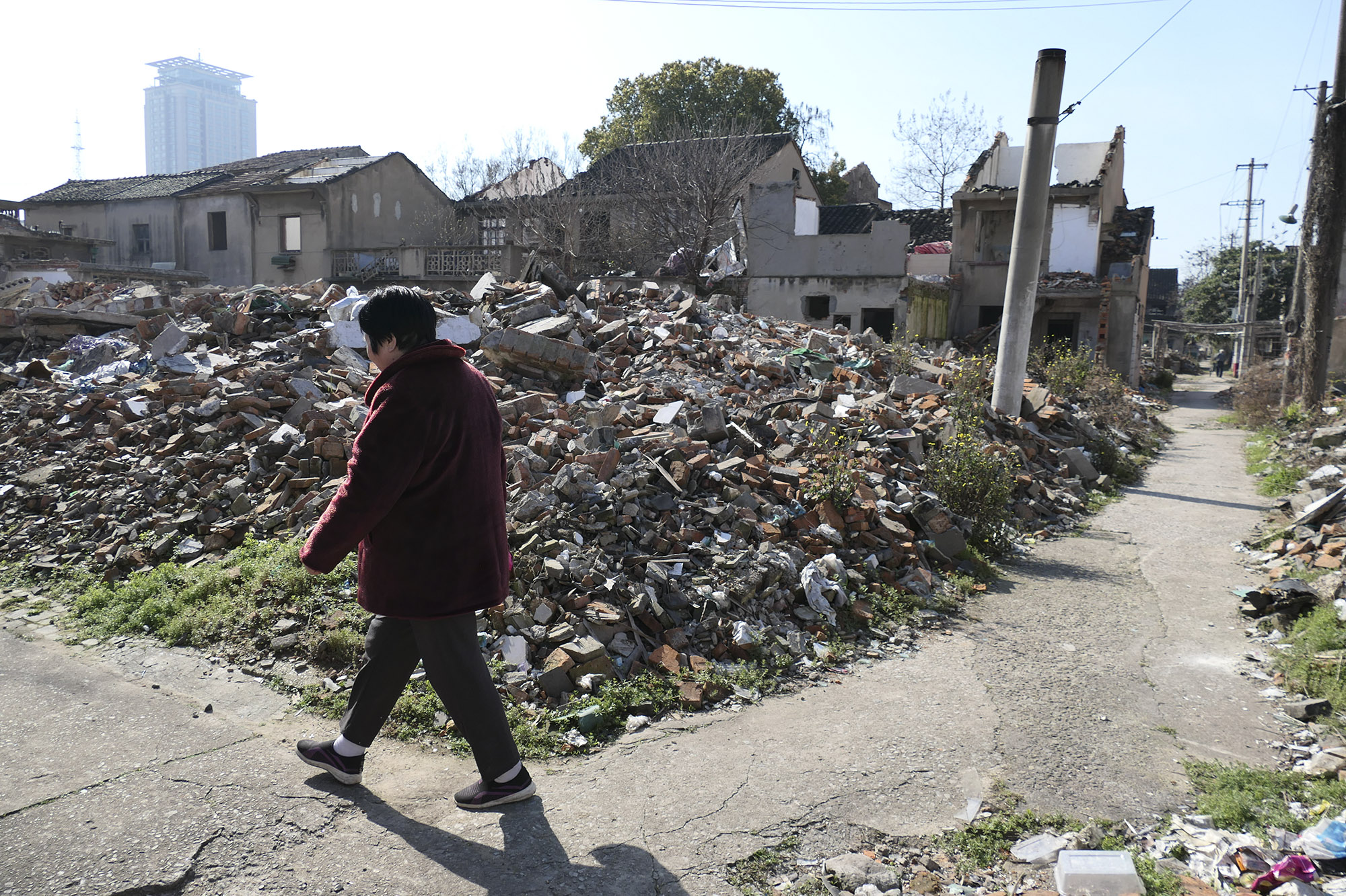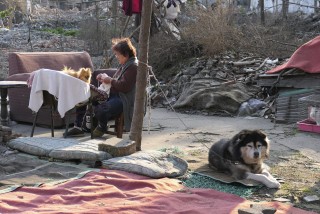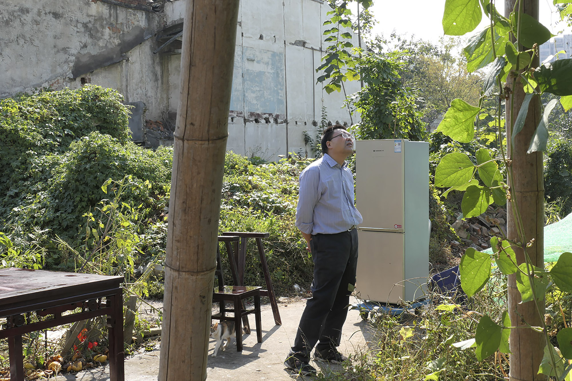 蒋小倩在拍摄过程中走遍夹城里的角角落落,仔细观察出现在她面前的人与事。她在与当地居民的交流中,认真倾听,以诚相待,用沉浸式的拍摄方式,将当地居民的情感、个人诉求与时势演变、公共利益之间的纠葛冲突呈现在她的画面里。她的照片以人为主要的切入点,将他们置于纷乱的拆迁场景中,把拆迁进程中人们的无力感以及利益博弈的冷酷一面也若隐若现地表现出来。我们可以通过她的影像记录,站在一个相对较近的距离,观察一地拆迁对当事者的影响,对当地文化传统、生活方式的影响,进而让我们反思大时代的欲望与小人物的命运之间的关联;反思过去的存在与未来的历史书写之间的关系。