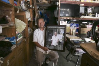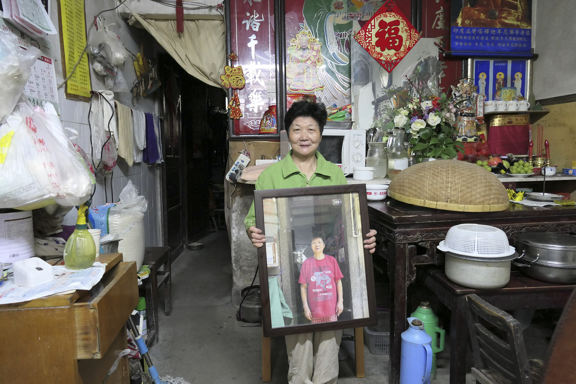2020年8月21日,钱师傅。拿着我给他拍的照片在自己的杂货店。他70多岁了,原在食品厂工作,工厂关闭后开了30多年的饭店。