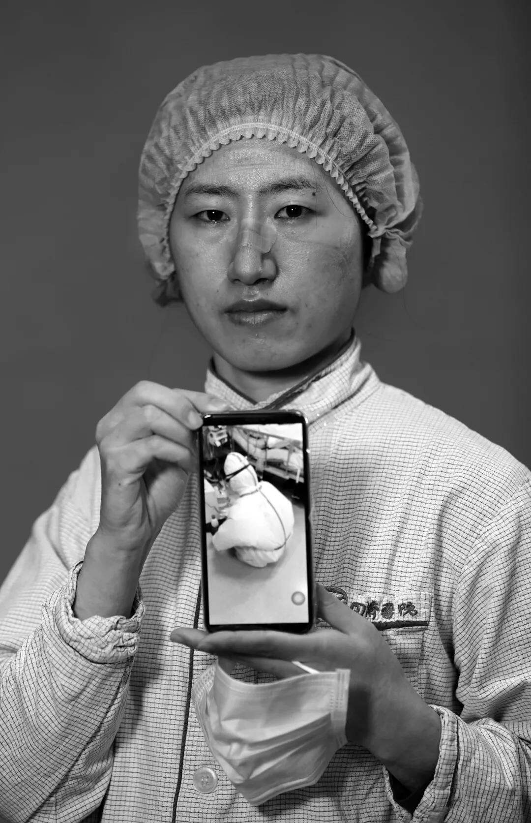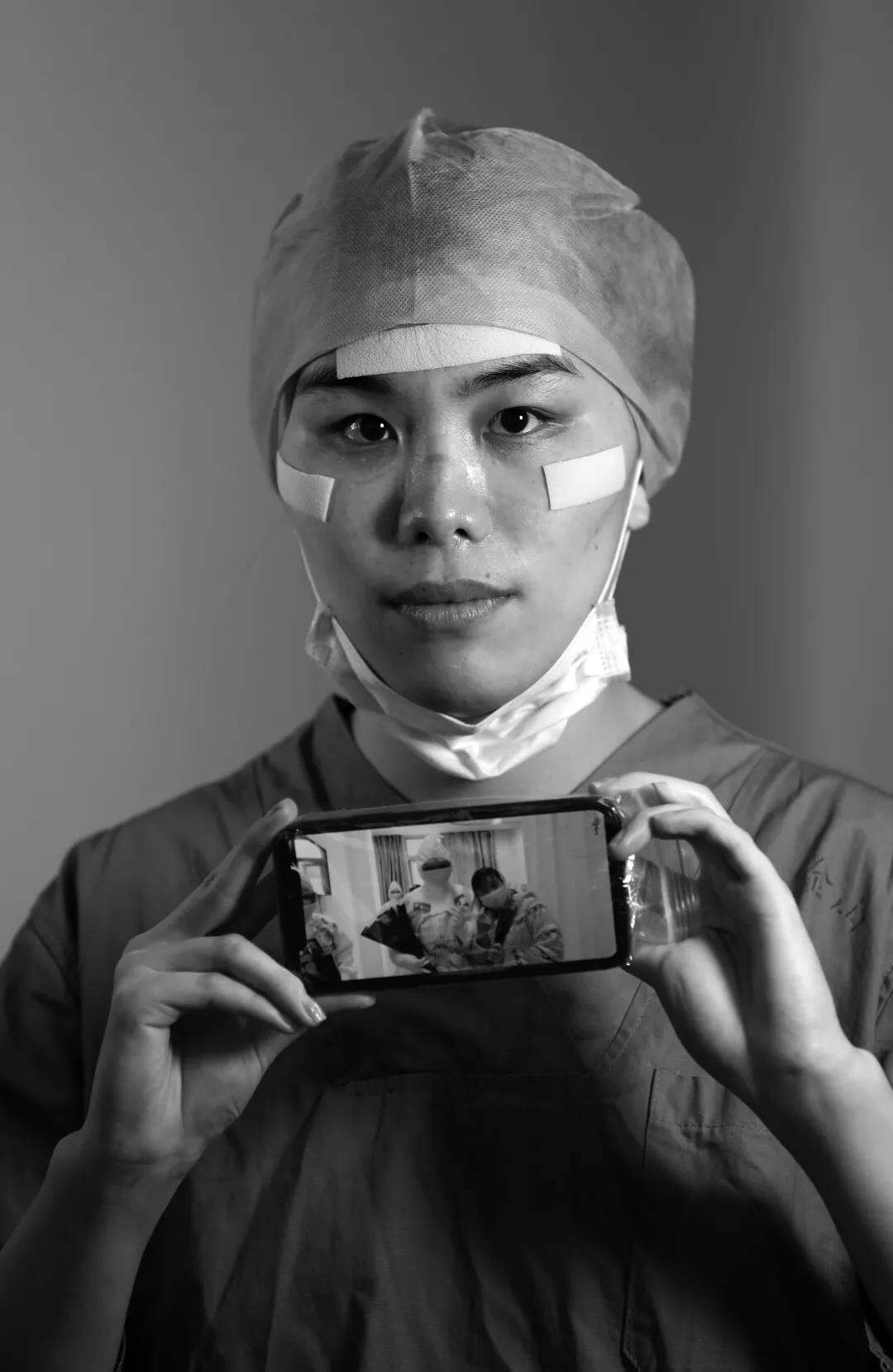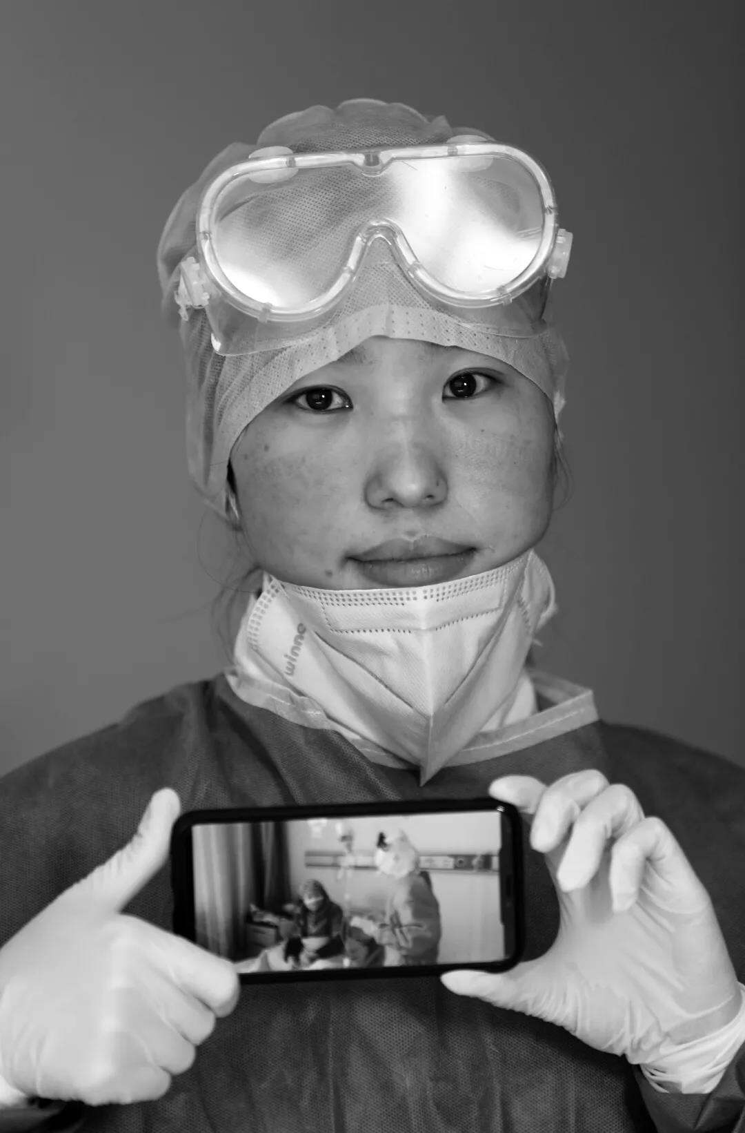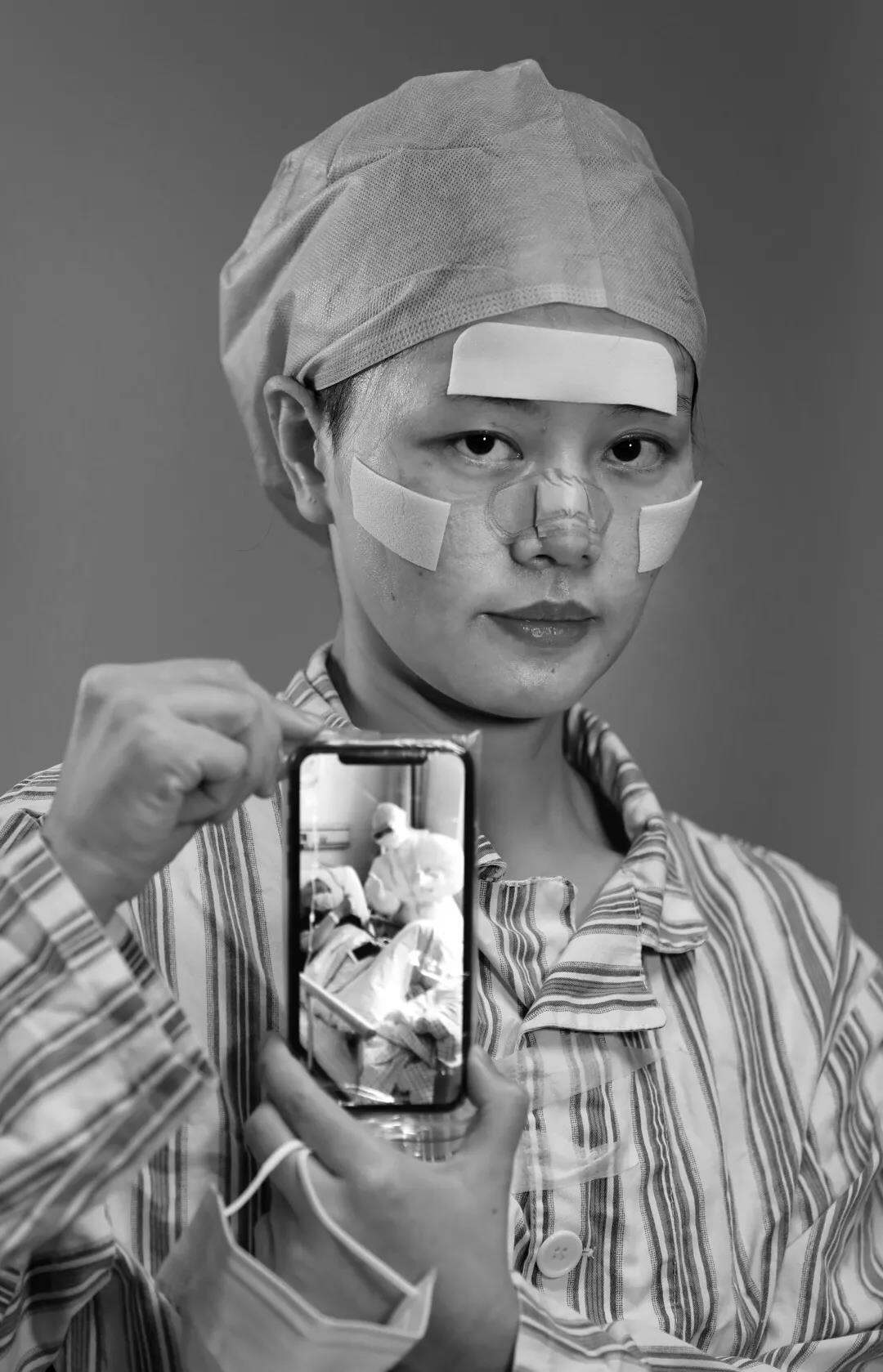 一幅手机中最牵挂的患者的照片,一次富有仪式感的定格,让物理层面的距离得以消除,让心灵深处的理解汇成一体,让朴实的情感彰显,让动情的倾诉深藏。借用医务工作者拍摄的“疫”线画面入镜,既显现出疫情报道中的公众影像价值,又赋予这组肖像对特定时空下医患关系加以诠释的深意,更体现出当代影像传播的新潮。