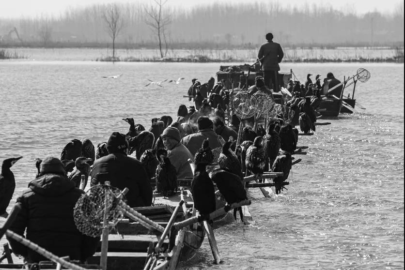 2010年3月10日,济宁,微山湖上打渔人 。