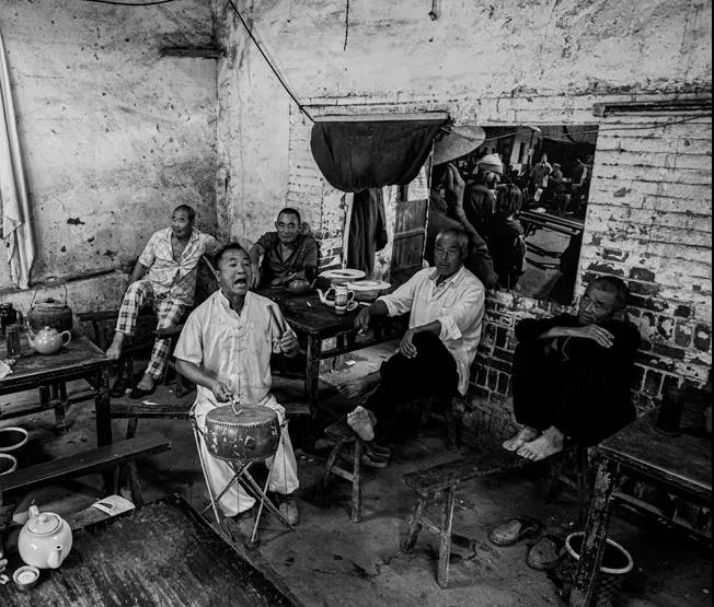 2016年8月4日,临涣,古运河旁茶客与说书人。