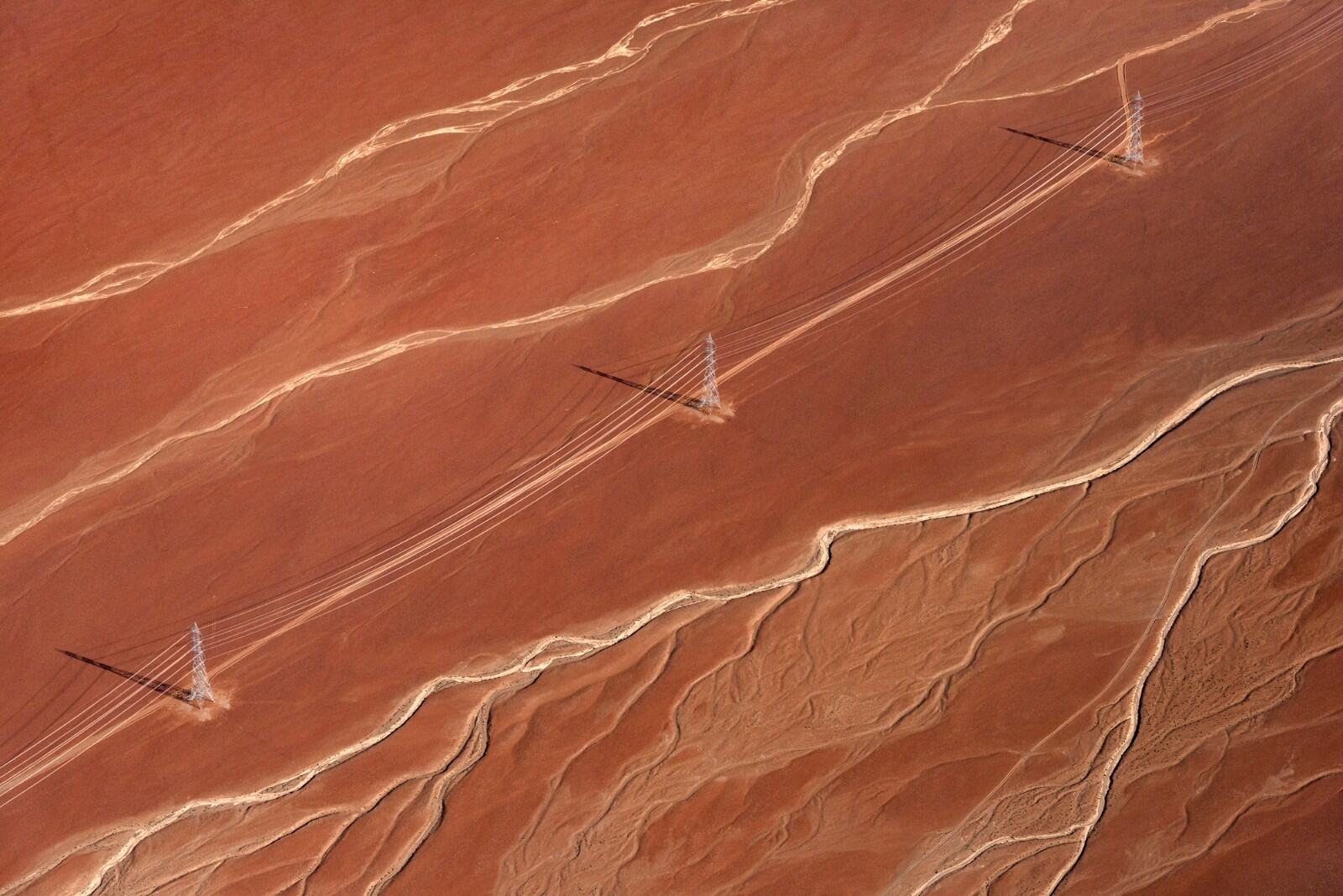 4.智利阿塔卡马地区的输电塔,新的输电线路通过国家电力系统将可再生能源输送到智利南部的人口中心。