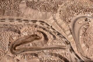 Mina Chuquicamata, north of Calama, Chile. A small section of the mine pit reveals the vast quantity of waste rock produced as a result of open-pit copper mining.