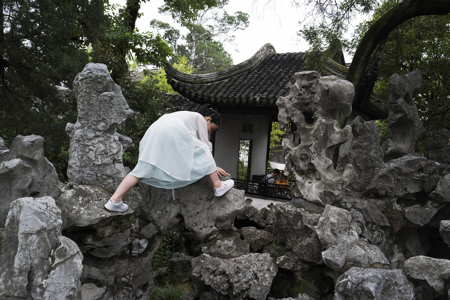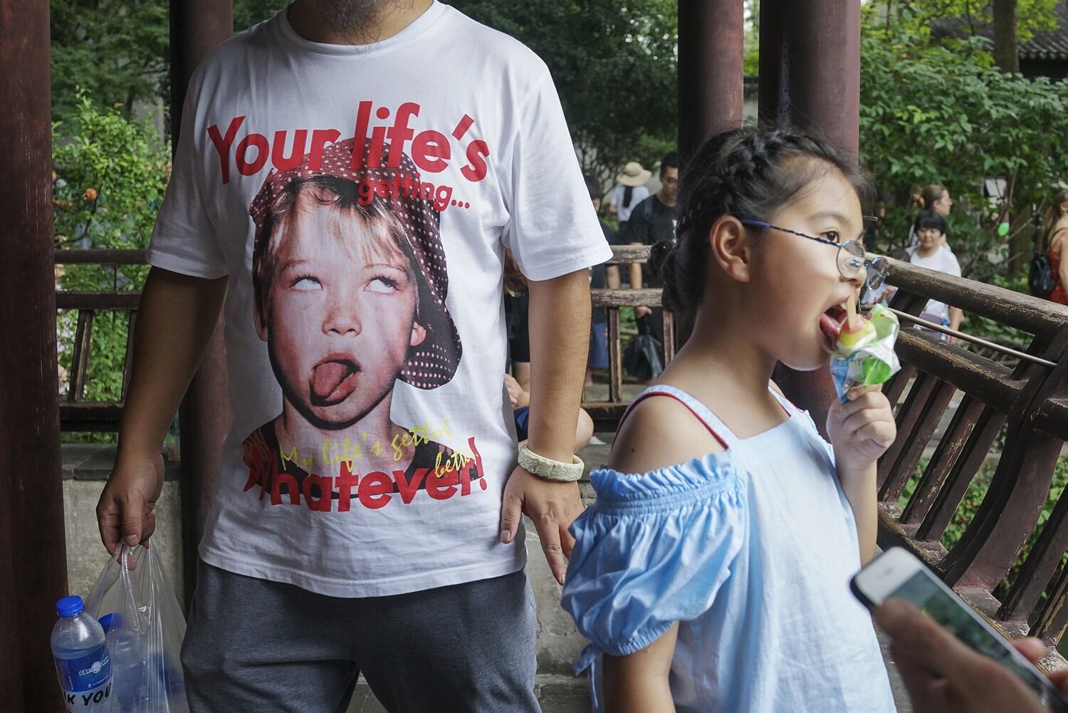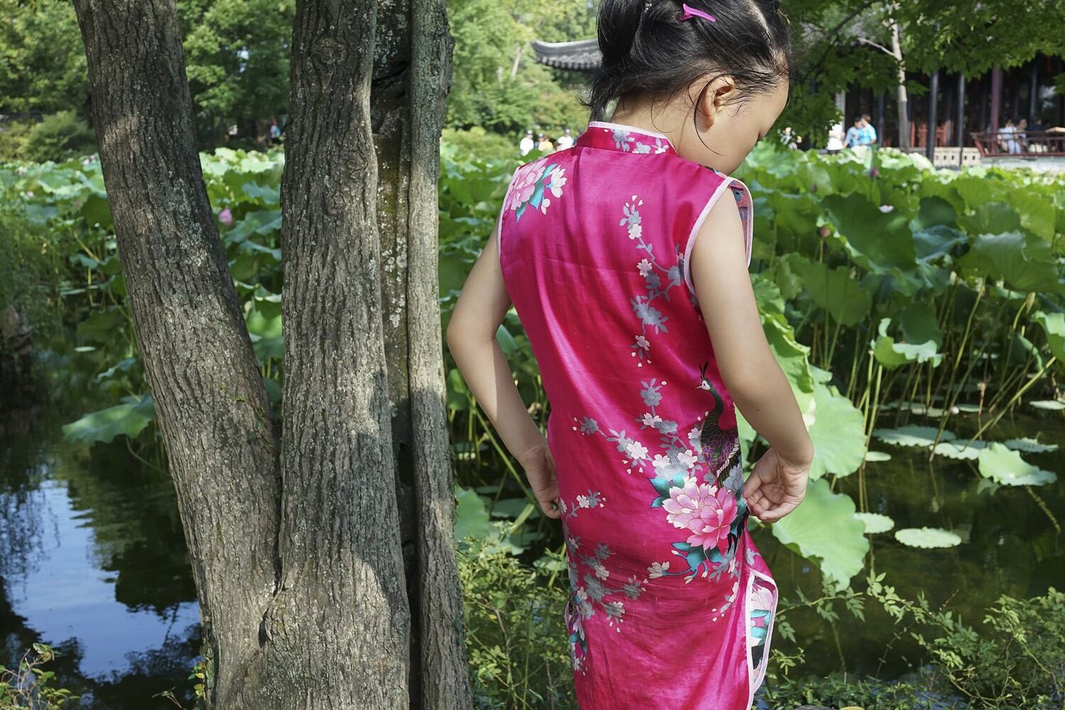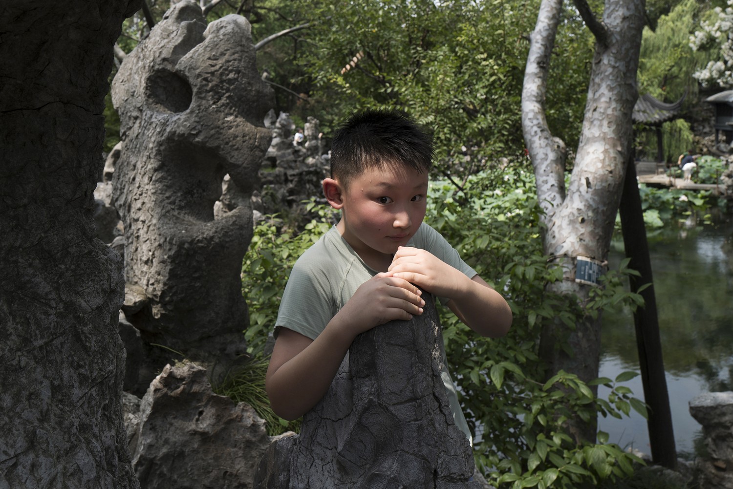 中国古人的园林情结从孩提时代就根植于心灵,只是在园林文献上很少有记载。因此我将目光更多地注视着那些跟随父母来到园林,忘情地在园中嬉戏、游戏的孩童,用镜头捕捉在荷风四面亭或任何一隅安静地看书、绘画的孩童;当然也会抓拍到攀爬上树或在水塘里边玩水,甚至使性子的孩子。