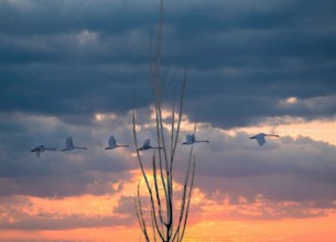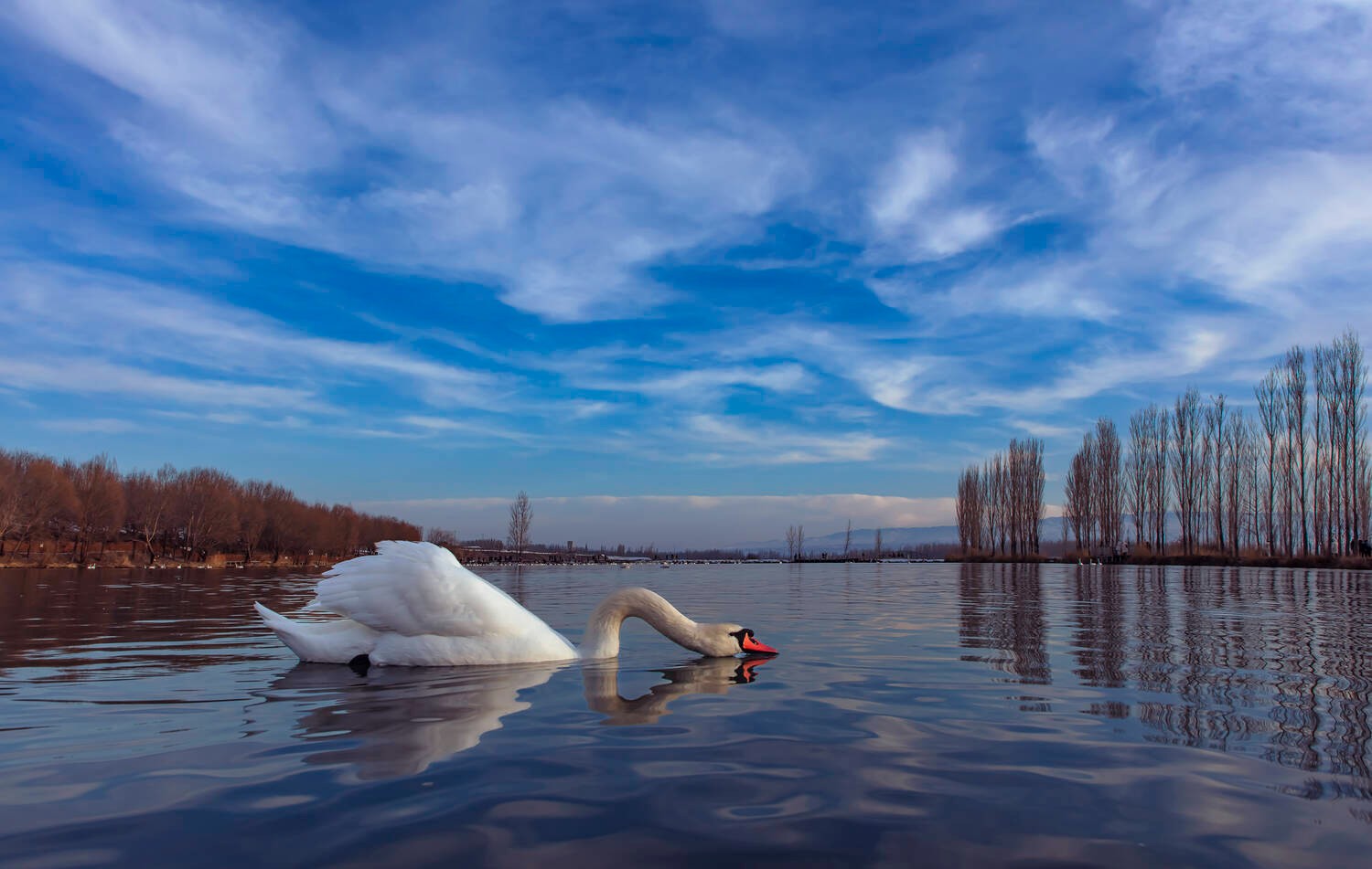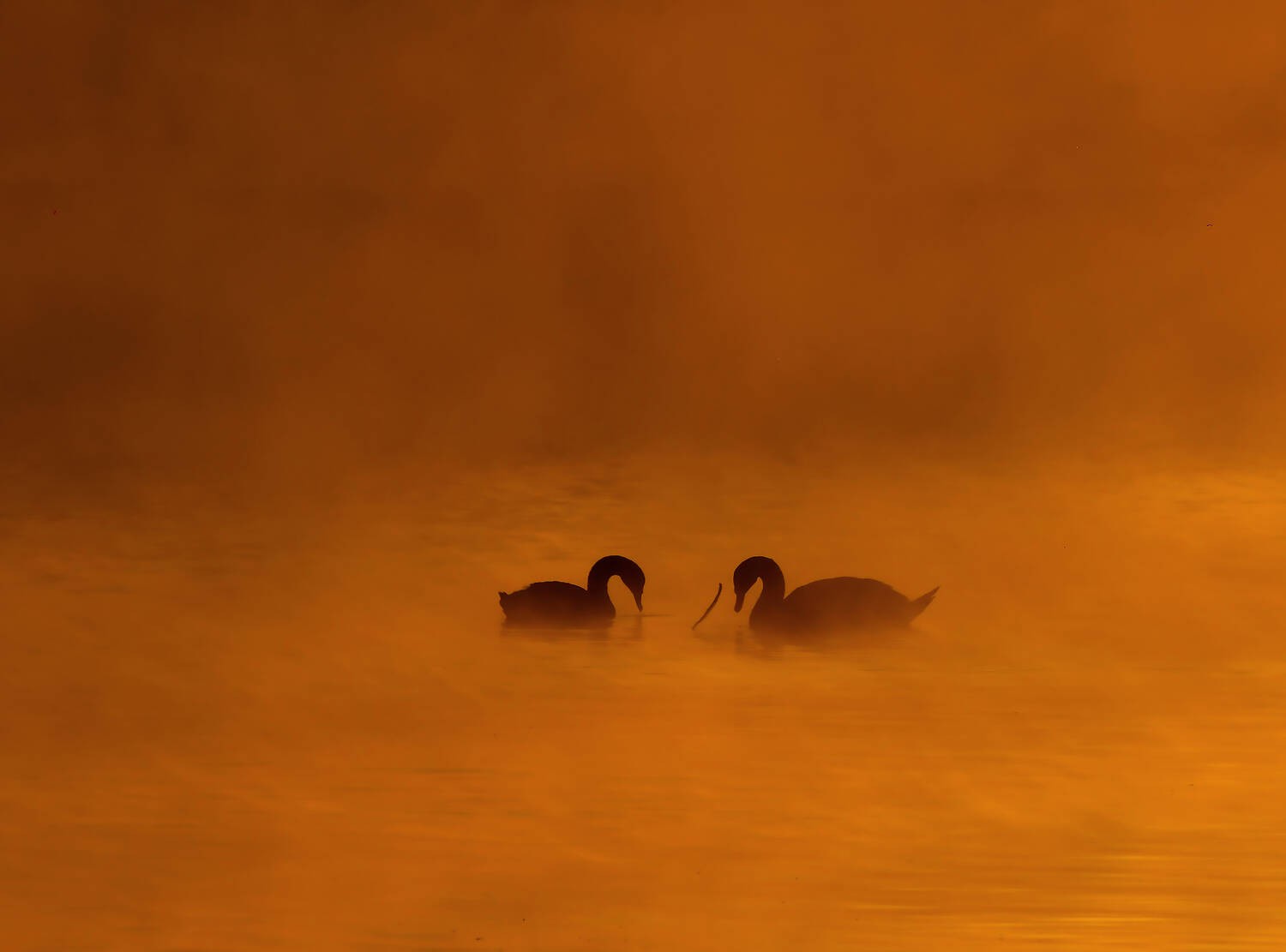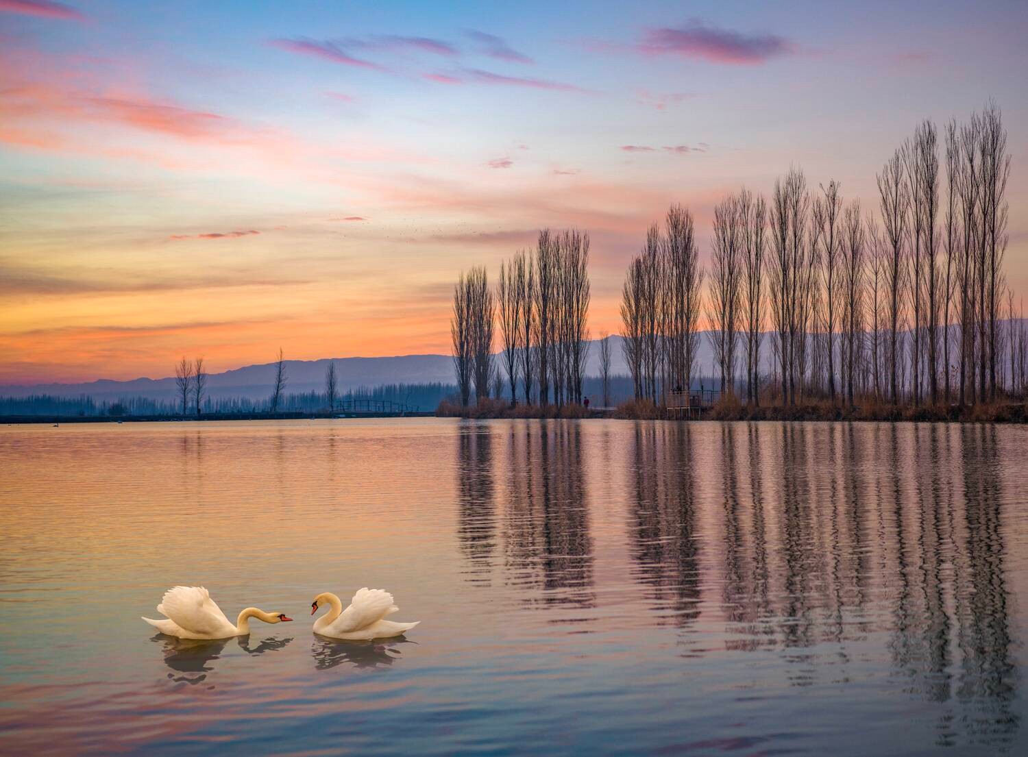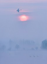 吴霖《天鹅嬉霞》