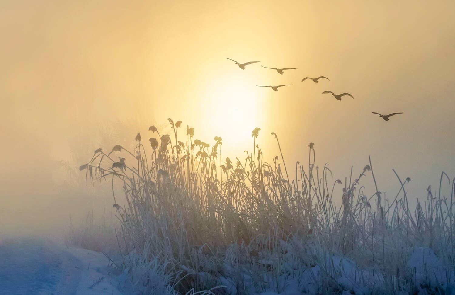 黄如川《天鹅映瑞雪》