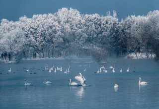 首届“苏韵伊情”伊宁县天鹅泉全国摄影展,由江苏省对口支援新疆伊犁州前方指挥部作为指导单位,中国文联摄影艺术中心、南通市对口支援新疆伊宁县前方工作组共同主办,伊宁县文化体育广播电视和旅游局、中摄协国际文化传媒(北京)有限公司携手承办,旨在倡导保护自然理念,充分彰显新疆伊犁河谷“湿地好生态,风景入画来”的自然之美,展现伊宁县“天山+雾凇+水雾+天鹅”独特景观。该摄影展自2023年12月启动,2024年2月29日截稿,共收到4000余件稿件。经评选及公示,共产生100件入展作品,其中摄影作品92件,短视频作品8件。