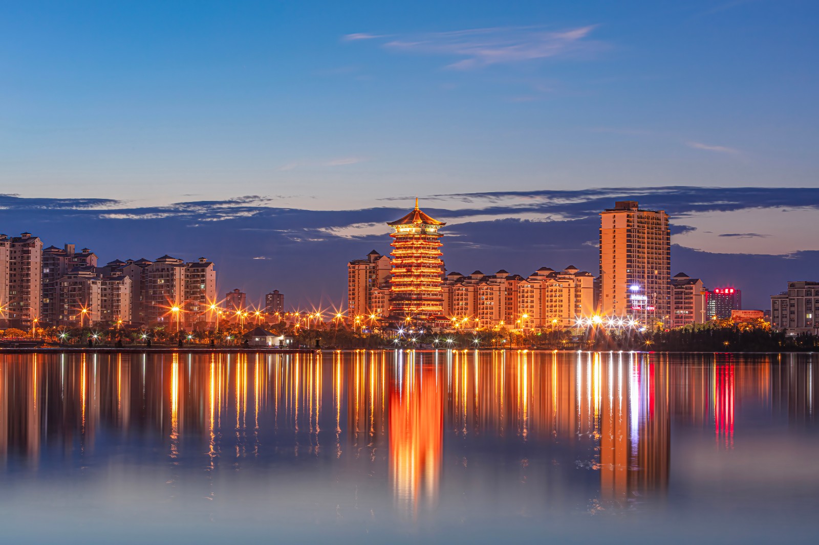 《钦州白石湖塔光水影》