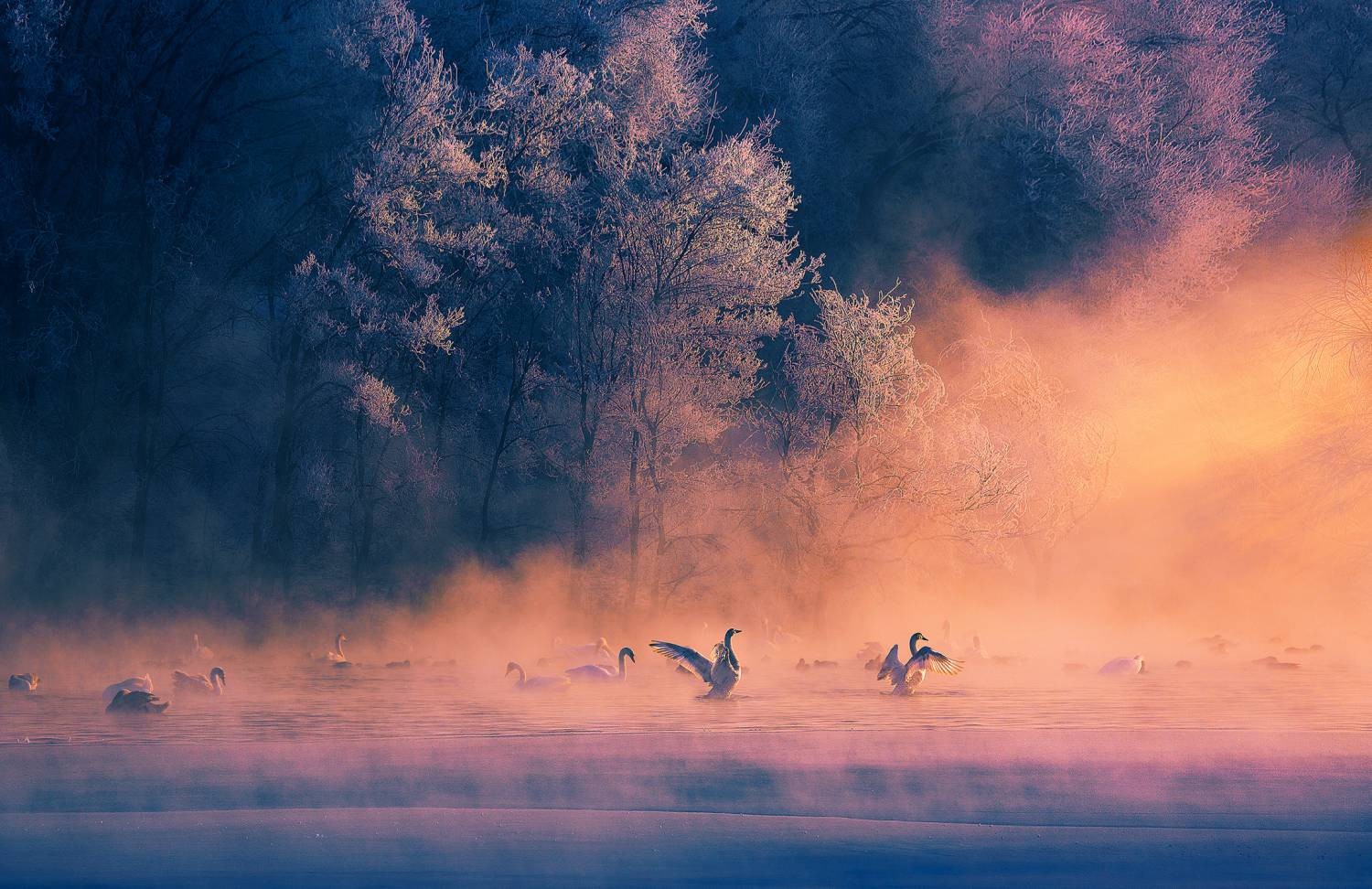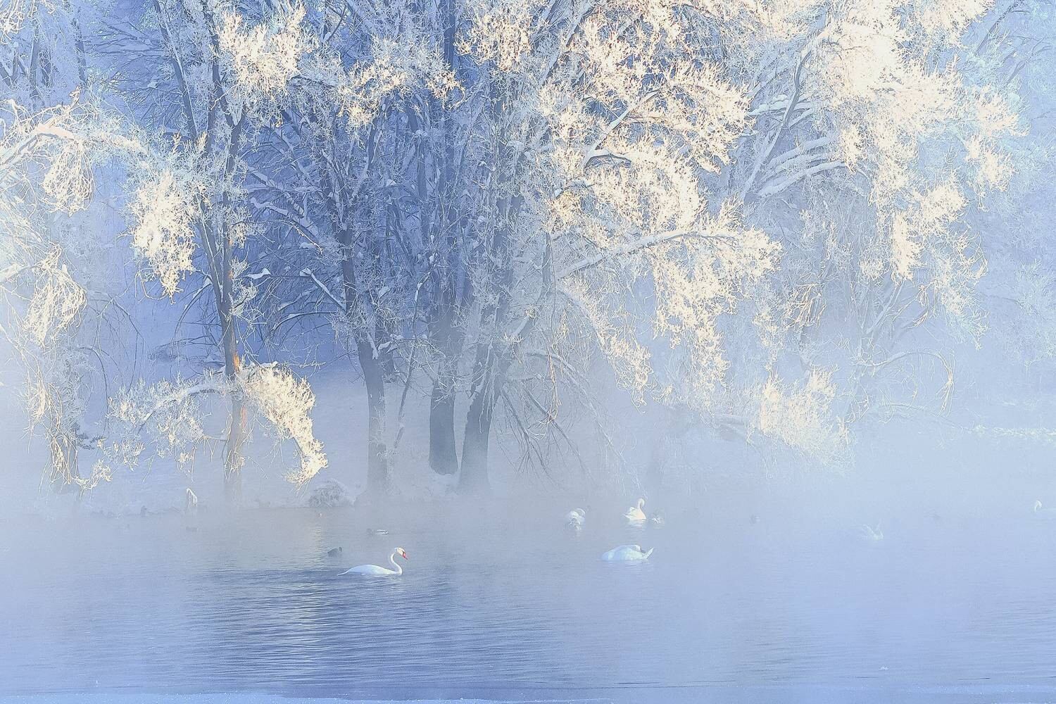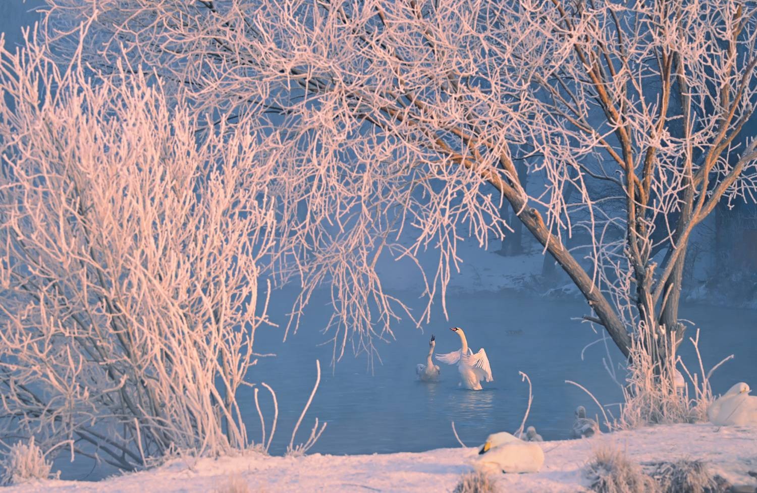 方有功《雾凇下的天鹅恋》