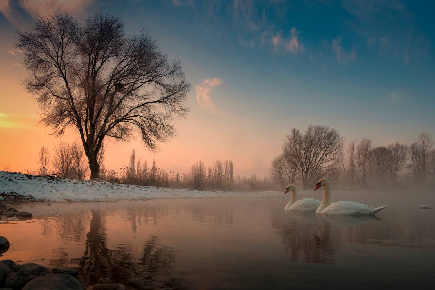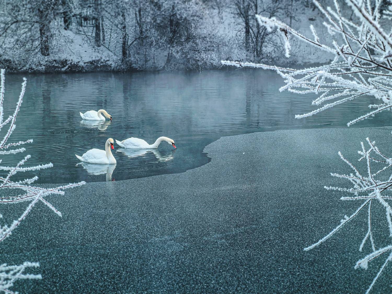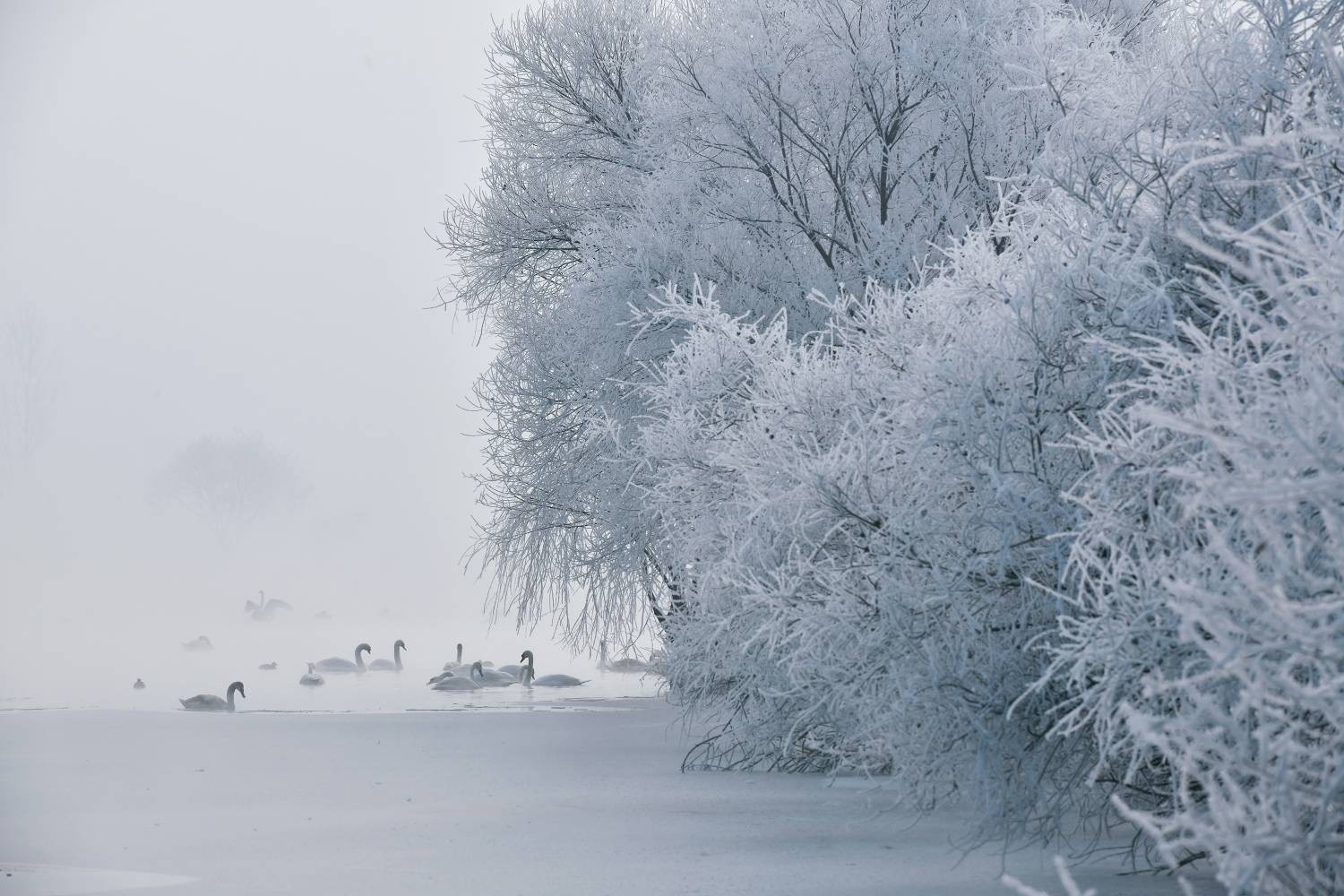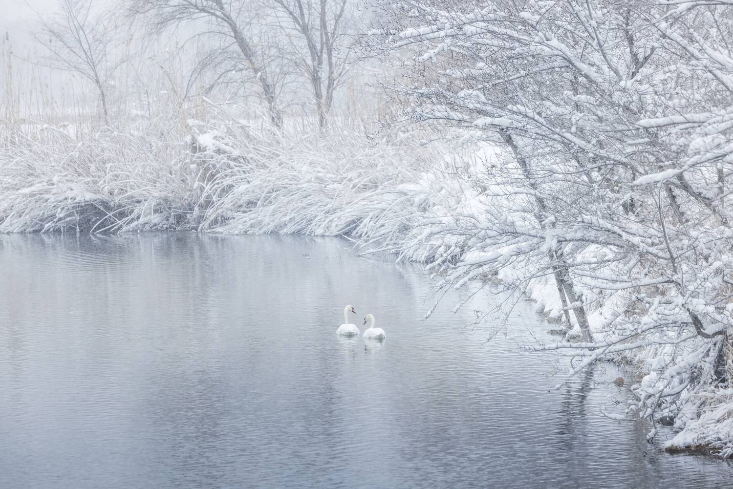 方有功《雾凇下的天鹅恋》
