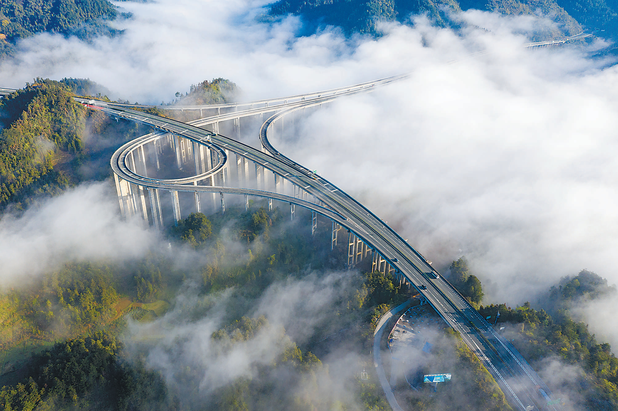 图片报道(人民日报2024年3月30日第 6 版)3月29日,湖南省湘西土家族苗族自治州吉首市,永顺至吉首高速公路石家寨互通立交桥周边出现云海景观,...
