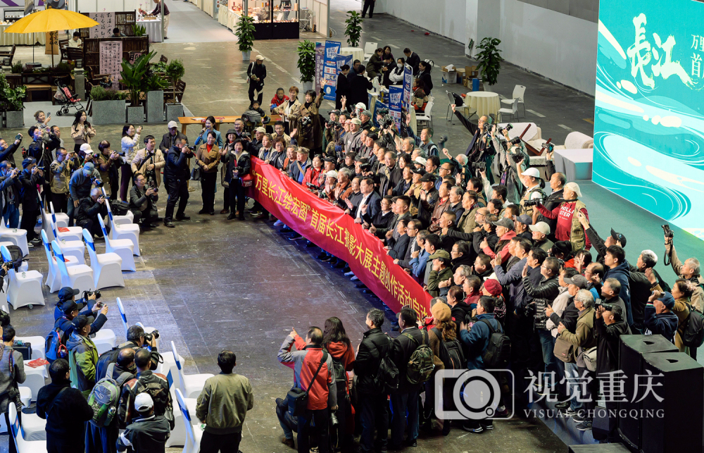 2023年11月16日,来自川渝两地的百余名摄影师汇聚在重庆国际会议展览中心(南坪),共同见证“万里长江绘宏图”首届长江摄影大展主题创作活动以大合影...