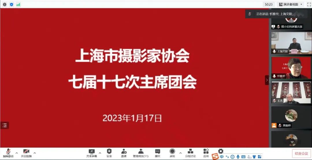 2023年1月17日,上海市摄影家协会七届十七次主席团会以视频方式召开,上海市文联党组成员、专职副主席、秘书长沈文忠,上海市摄影家协会驻会副主席、秘...