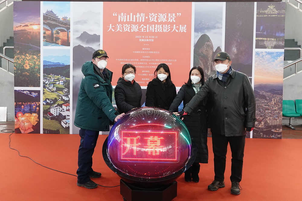 展览现场为庆祝党的二十大胜利召开,展现深圳市南山区与桂林市资源县携手聚势,持续发力谱写乡村振兴、共同富裕的精神样貌,宣传资源丰富的文旅资源,扩大对外...